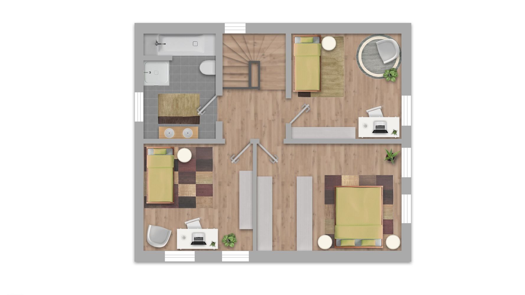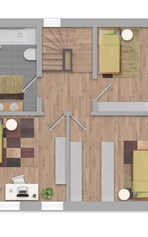 Die durchdachte Raumaufteilung umfasst ein modernes Bad mit Fenster, das mit einer Badewanne und einer Dusche ausgestattet ist – ideal für entspannende Wellnessmomente. Die Einbauküche bietet Ihnen ausreichend Platz, um Ihre Kochkünste zu entfalten und kulinarische Köstlichkeiten für Familie und Freunde zu zaubern.