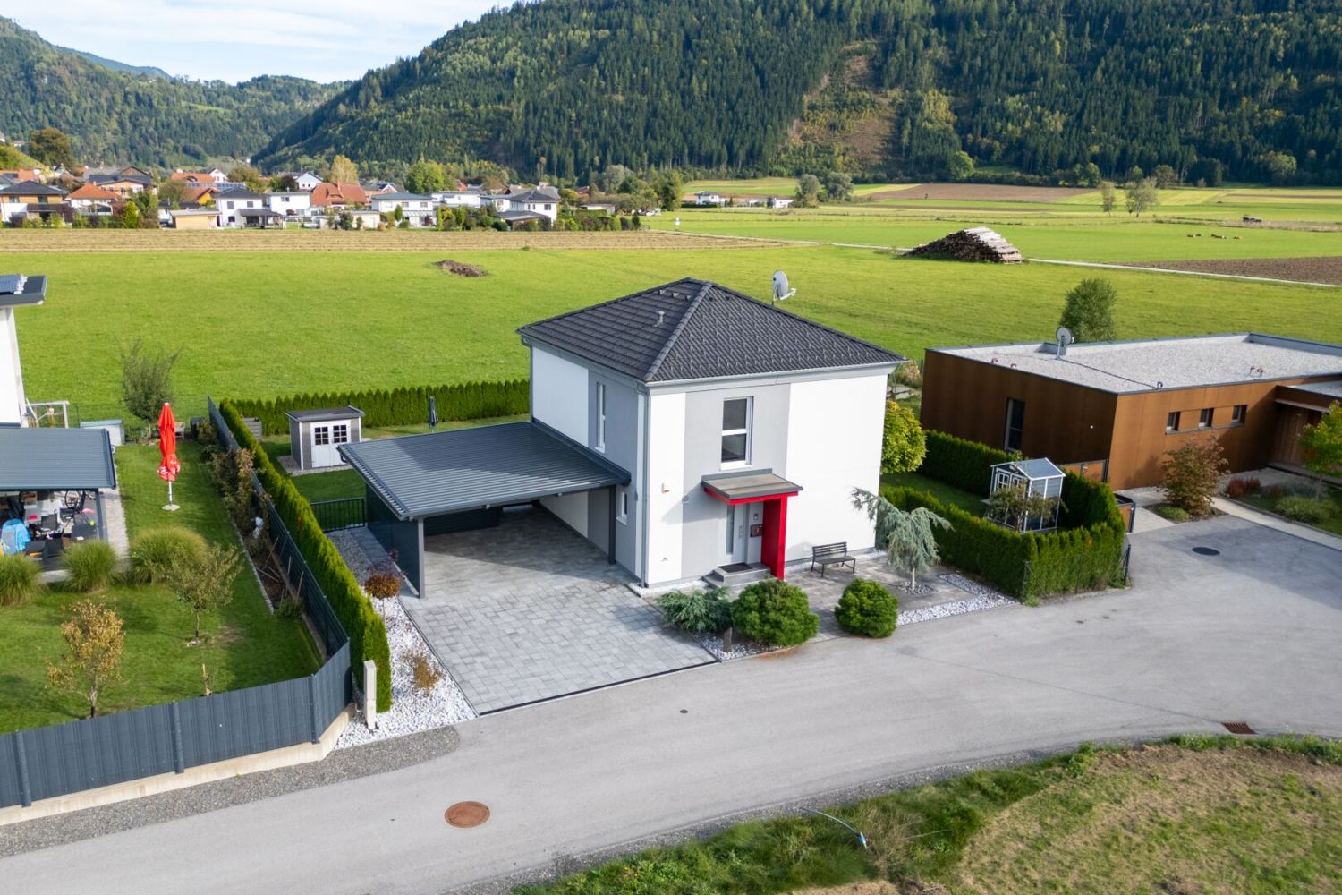 Willkommen in Ihrem neuen Zuhause in 9560 Feldkirchen in Kärnten! Dieses beeindruckende Haus bietet Ihnen nicht nur eine großzügige Grundstücksfläche von 767 m², und Platz für Ihre Familie mit drei Schlafzimmern, sondern auch eine Vielzahl an modernen Annehmlichkeiten, die Ihren Wohntraum wahr werden lassen.