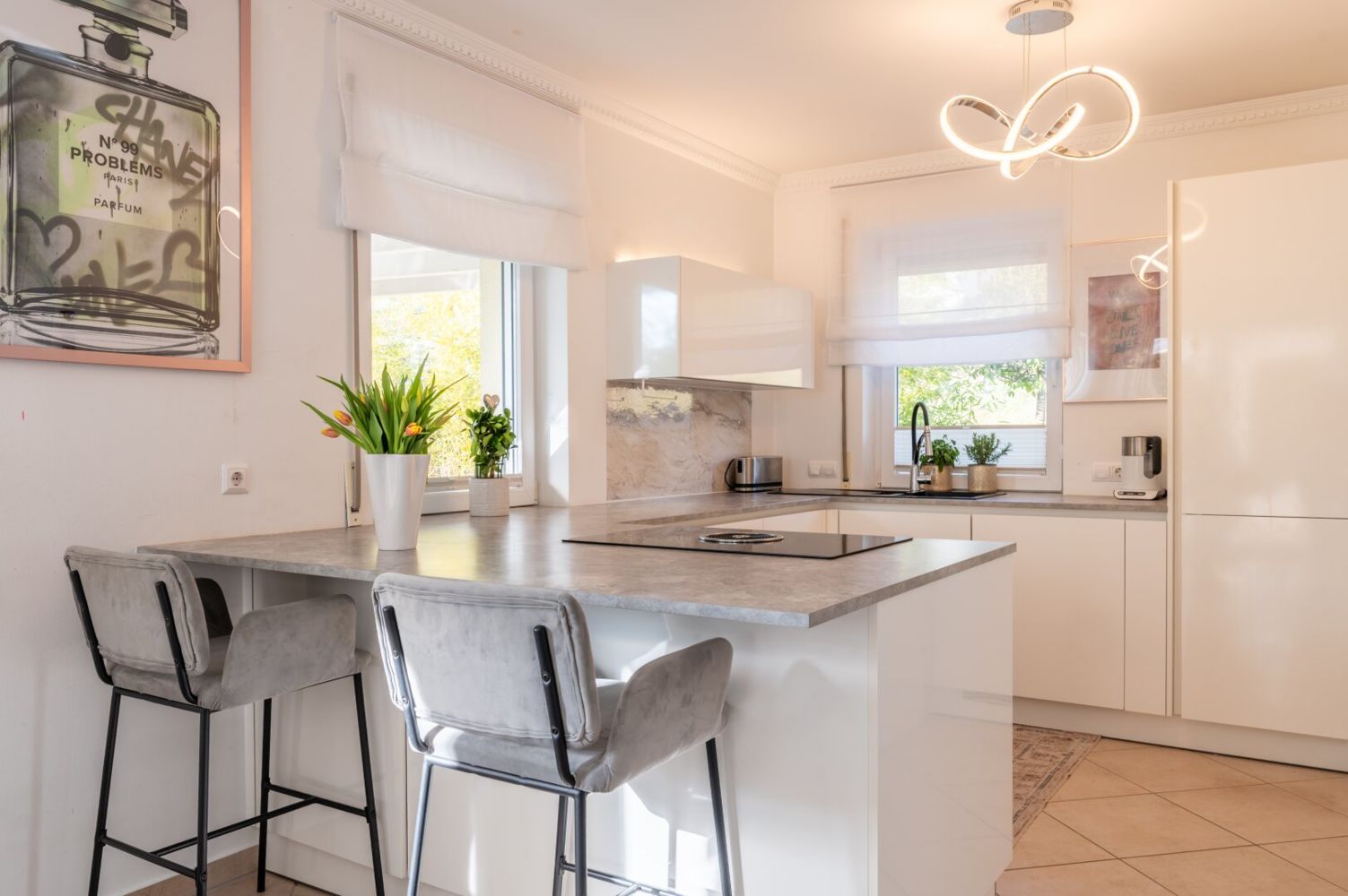 Die hochwertige Ausstattung des Hauses sorgt für ein komfortables Wohnen. Die Fußbodenheizung garantiert Ihnen angenehme Wärme in den kühleren Monaten. Die offene Wohnküche ist mit einer stilvollen Einbauküche ausgestattet, und lädt zu geselligen Kochabenden mit Familie und Freunden ein.